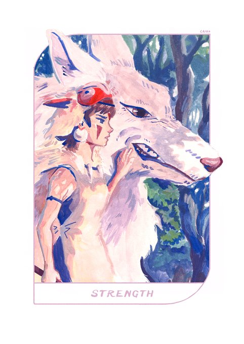 the strength card of the major arcana signifies intense emotion, courage, and compassion. i feel like san from princess mononoke -- esp her fierceness and unwavering dedication to the struggle -- is the perfect archetype of strength