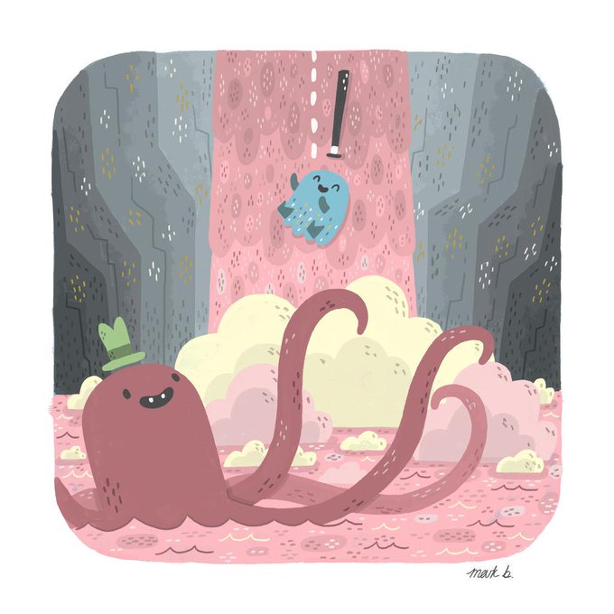 My #colour_collective piece for this week's theme of #tearose - a little monster jumping off a waterfall!