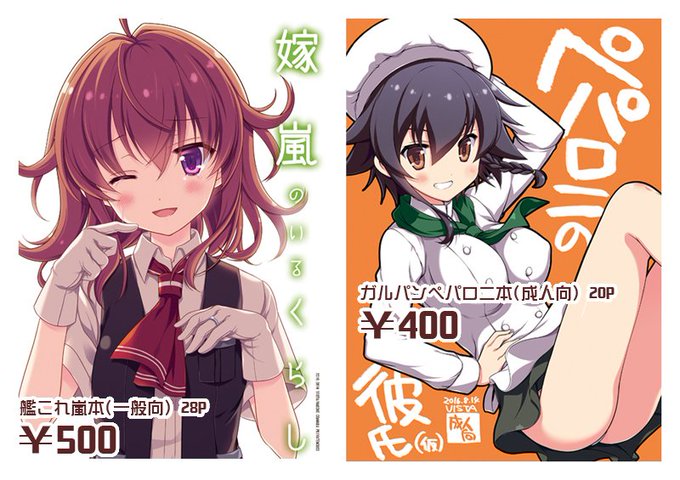 遅くなりましたがC90のお品書きです!14日シ09b「VISTA」です。新刊は艦これ嵐本とガルパンのペパロニ本、新グッズは嵐/萩風抱き枕カバーです。WEBカタログ→https://t.co/EiciKU1lTy