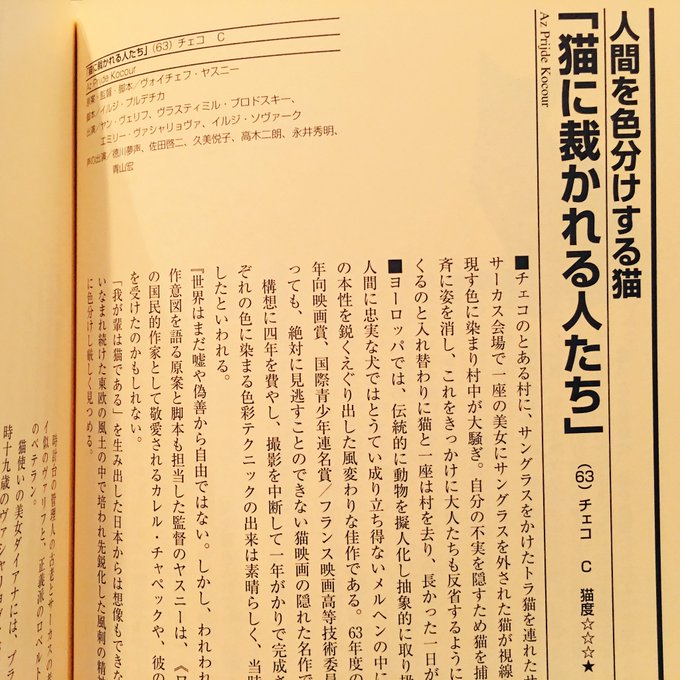 千葉豹一郎『スクリーンを横切った猫たち』猫が出てくる映画を紹介することに特化した、猫と映画好きにはたまらない本。きちんと猫度具合の記載もされている。著者の名前に豹が入ってることがすごい…