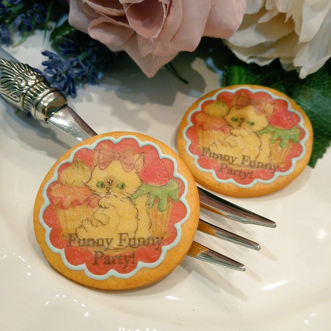 4daysセールも終わり、次はいよいよfunny funny party!です🎵 当日税込み5,000円以上お買上げの方に、skogmarknadさんの猫ちゃんイラストがキュート♥なクッキーブローチをプレゼント❗❗