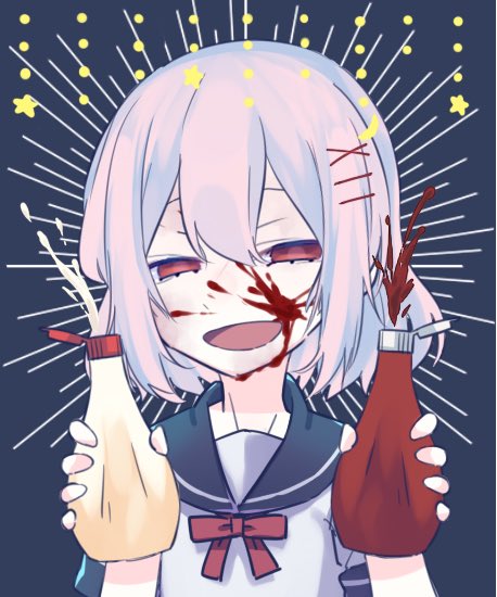 さっきのの黒幕の……しめじっていうんですけど……顔についてるの?ケチャップですよ…… #おなかすいた