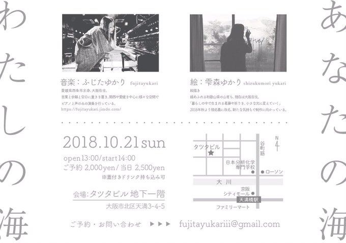 本日こちらのお手伝いで大阪入りしています。10.21(sun)atタツタビル地下室/開場13:00開演14:00/当日2,500yen