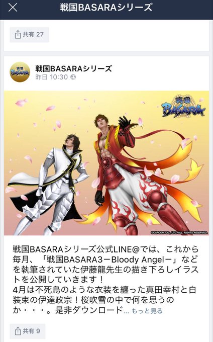 【「戦国BASARA」シリーズ公式LINE@アカウント運営中!】“伊藤龍”先生描き下ろしイラストも定期配信!トーク画面で「HOME」ボタンをクリックし、当該記事に急げ! https://t.co/Nhvtbpz7Pa