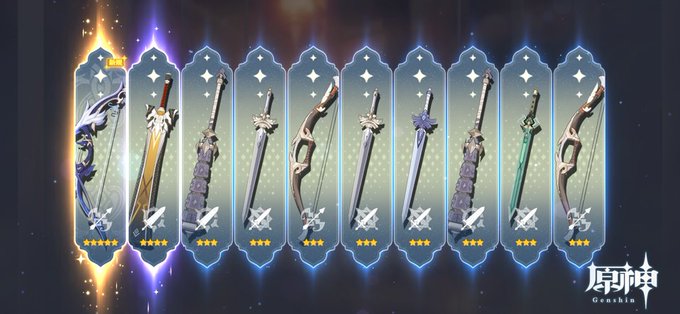 60連ででかい剣がすり抜けたけどなんとか100連で目当ての弓ゲットです 若水まじビジュがいい 夜蘭に持たせたいもんな 全て予算内に収まりましたが護摩は無理ですねこれは