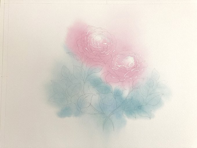 4. バラ着色後、マスキングを取って完成。