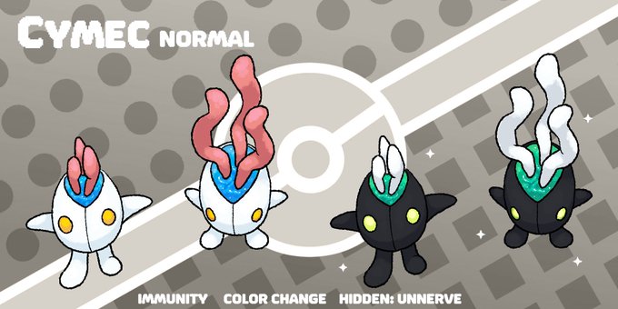 Cymec, the stem cell #fakemon! The soft, sensitive innards of this Pokémon are protected by its hard metal shell. The gooey substance inside is said to have regenerative properties.