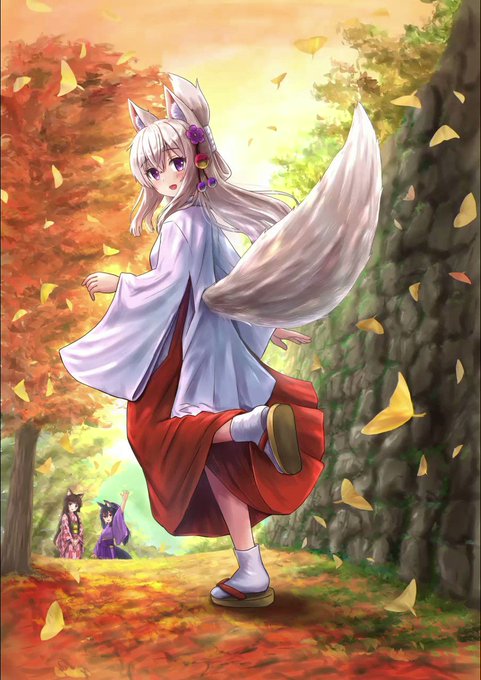「巫女狐娘達といつもの山坂道」イラストメイキング風タイムラプス動画です。