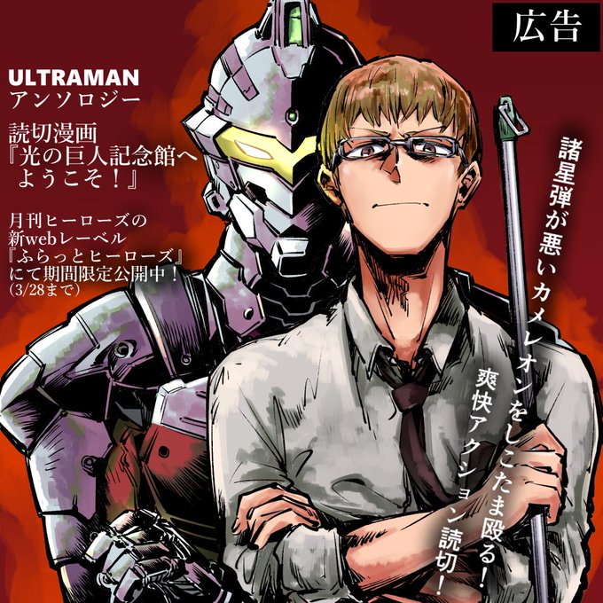 漫画ULTRAMAN(https://t.co/er3Ykkbdhm)のアニメ化記念アンソロジー企画でお声掛け頂きました。諸星弾がめっちゃ異星人殴る漫画です。