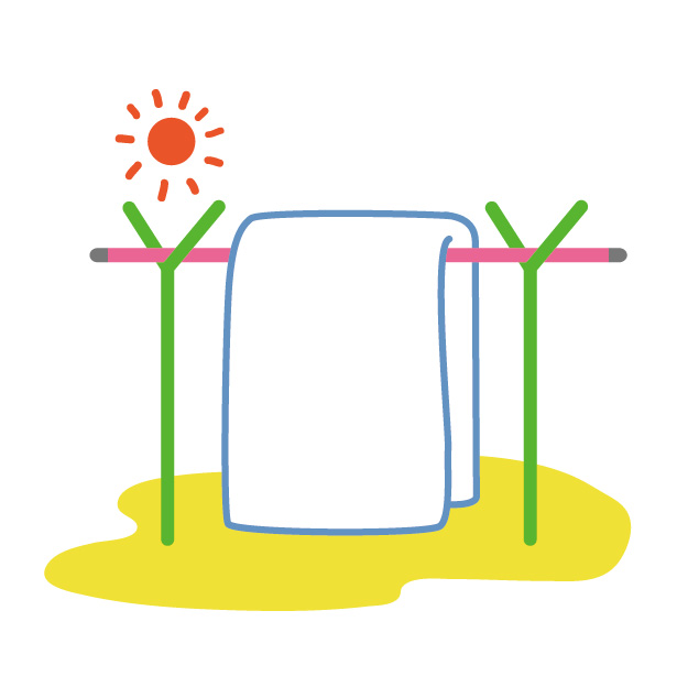 センター経由で天から吊られている=物干しざおに干されるふとんのイメージ