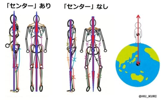 背中側の筋肉が硬いと絶対に取れないバランスなので、初動負荷も非常に役に立つ。例えば、下腿三頭筋の硬さが胸椎を丸める動きを邪魔したりする