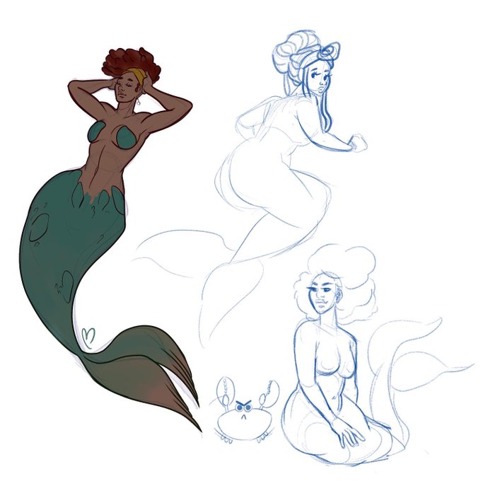 Some very quick, very loose sketchies I was able to do for Mermay while also being a Work from home stay at home mom lmao. I’d love to take them further when I find an ounce of time 🙃