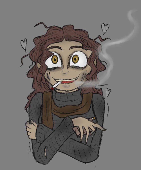 A bit of a concept art for a Deadlands Noir character named Sarah Mitchell, destitute starving artist grifter. Her vice is smoking and she uses her cigarette ashes with water as a poorman's greyscale paint. She has a delusion that a man she sees often is her soulmate. #deadlands