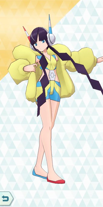 黄色いのを羽織ってると思ってたんだけど、脇の下の部分が無いってことは黒い服と黄色い服は一緒になってるのかな。下半身は黒レギンス単体みたいだが。