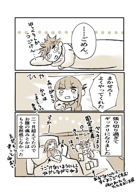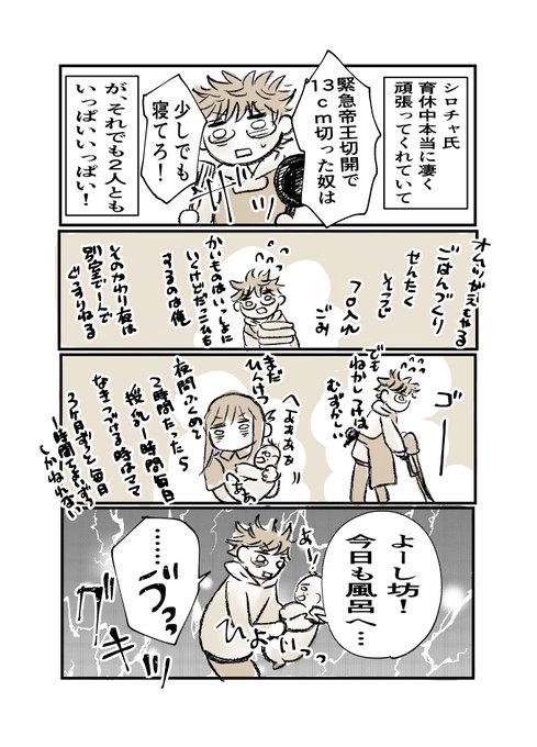 2時間通して眠れる事はそろそろ三ヶ月無いままなので、ほぼ家事全部任せてても眠気と貧血が凄かったけど、母乳以外なんでもできるからすぐ隣で休んでるだけで安心して私は意識を飛ばせる。大体なんでも任せられるってすごい安心感。いつもありがとう。#育児漫画