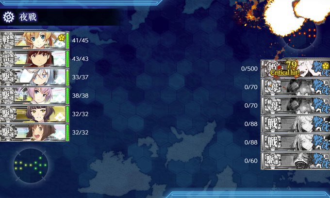 ラスダンは、夜戦までにボスのみ大破残しだったが、3回ほどぬけなかった。