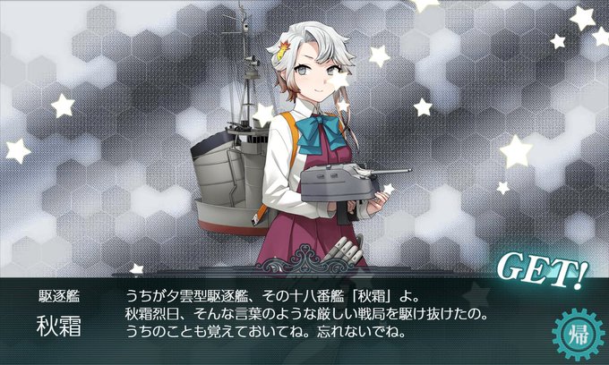 掘り4回目にて迎合、A勝利にてドロ。明石を組み入れた戦艦+軽母×2編成。Aでもドロ出来る可能性があったので道中含め支援はなし。基地航空隊をボス集中のみ。早い段階で完遂できて、本当良かった!。後はデ・ロイテルです。