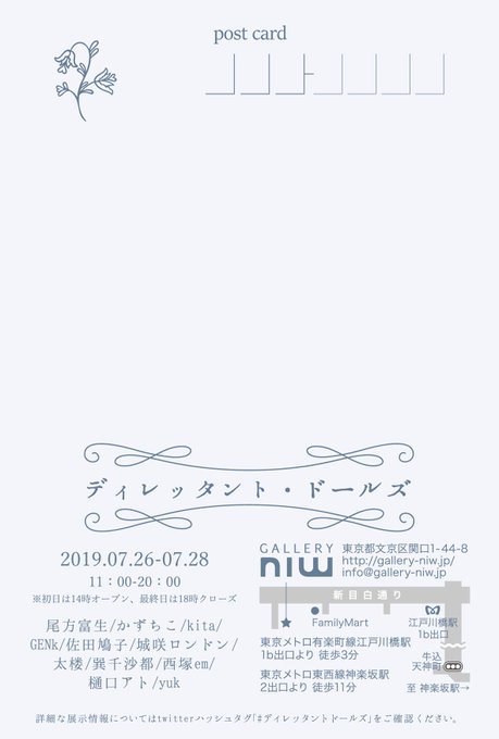 【告知】7月26日~28日に東京のgallery niwさんで開催されるグループ展「#ディレッタントドールズ 」に参加させて頂きます。