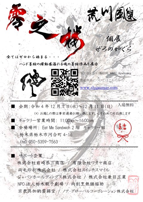 ついに栃木を舞台に魂の墨絵作品が展示