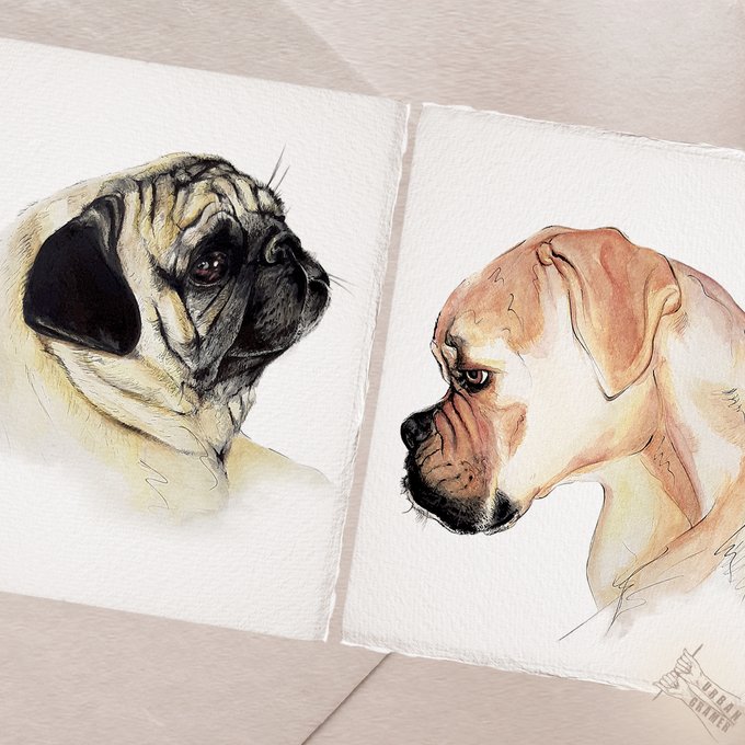 Estoy abriendo comisiones de retratos para mascotas. Según tus fotos dibujaré a tu perro, gato, caballo u otros animales. Para este tipo de encargos puedo utilizar cualquier técnica y estilo.