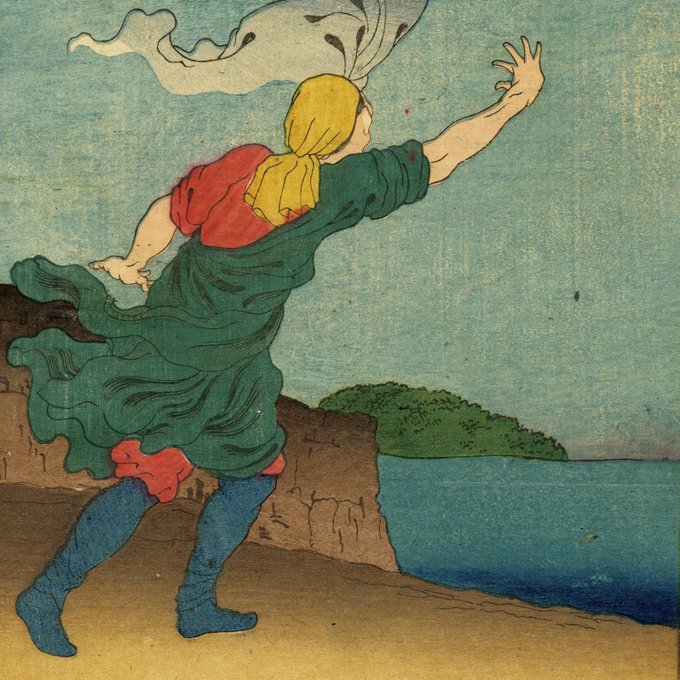 In contrast to the "二十四孝童子鑑," which were more consciously intended as landscapes, Kuniyoshi's later work, "唐土廿四孝," focuses mainly on people.
