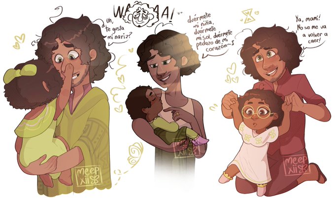 ola, hace como dos meses hice un AU donde Bruno es papi de Mirabel y no he podido dejar de dibujarlos pq me hace feliz 😭