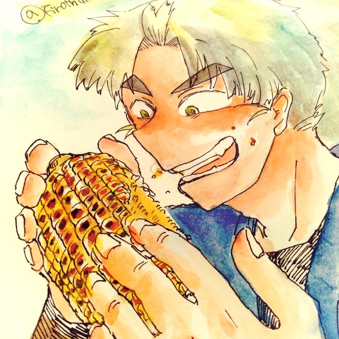 「焼きとうもろこし」を食べた竹谷君!