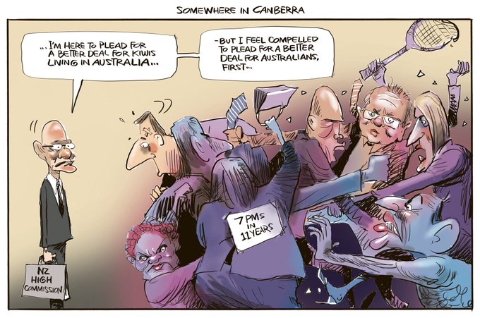 NZ’s High Commissioner Chris Seed pleads to the Australian Govt for a better deal for kiwi residents... my cartoon in today’s @nzherald Story: https://t.co/xgaGOR4qVz #nzpol #auspol
