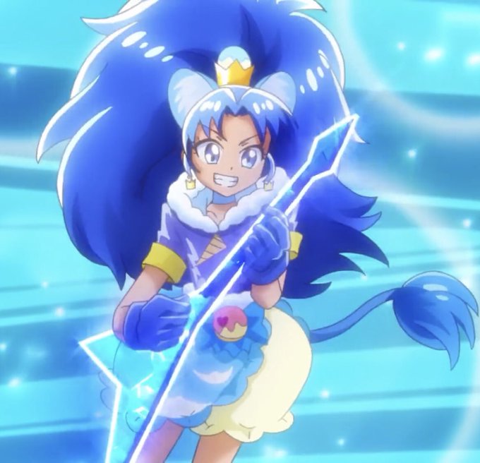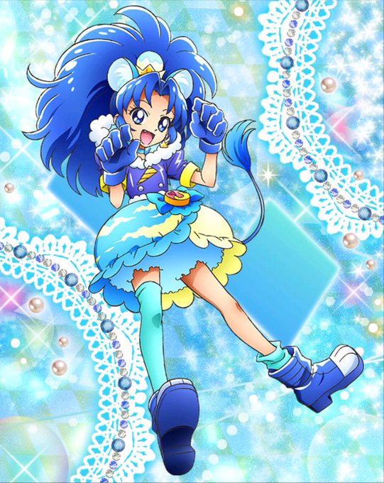 💙 The first Miku of the day is Cure Gelato from Kira Kira Precure A La Mode! She fits all 4 of the main criteria! She is also a talented guitarist, has a happy personality and is a videogame character! She is a true Hatsune Miku! 💙