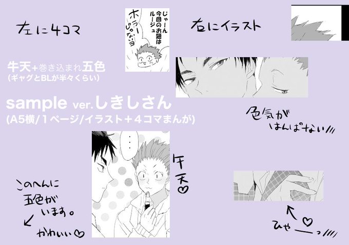 しきしさん(@494error)との白鳥沢合同ペーパーのサンプルです。5月5日の白翼6にて無料配布します。