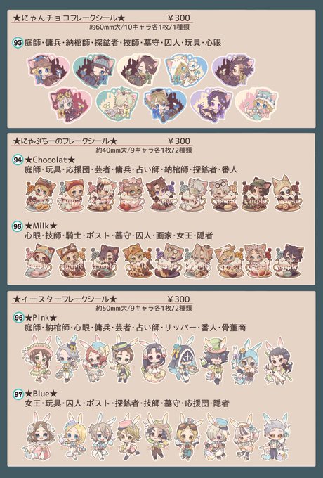 「にゃんチョコシール」が10枚入り1種類、「にゃぷちーの」と「イースター」のシールが9枚入り2種類。それぞれ違うキャラ9人ずつが封入されています。イースターのアクスタは組み立てるとこんな感じ☺️