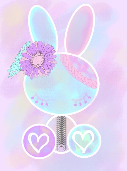 ユキリア(@yukiria_n)さんのハンドメイド絵の具『ヘビーメタル』💕をバックに使って白ウサギちゃんを描いてみました。