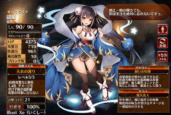 遠距離可能な前衛イケメン!素質で相手を毒状態にでき自身はリジェネ持ち!スキルでは防御によるカウンター系や攻撃と速度が上がる火力系!しかも火力系は次回発動以降永続になります