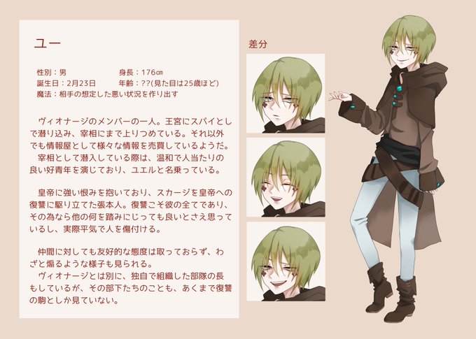 ヴィオナージのメンバー。皇帝に復讐心を抱いており、自分含め全てを復讐の駒としか見ていないクズ。平気で人を傷付けるし踏みにじる。