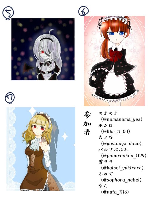 「メイド」をテーマに「誰のキャラデザだゲーム」をやらせていただきました。わたしは2番を描かせていただきました。リプライにてアンケートとるので是非私のキャラクターデザインを当ててみてください。