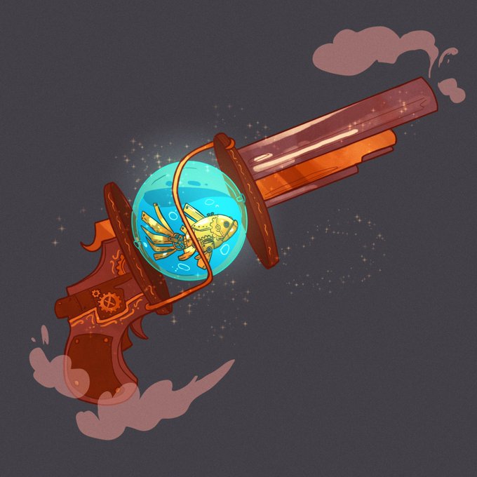 My DnD Artificer has a clockwork goldfish in an orb from one of the random trinket rolls so I worked it into a new firearm design 😜