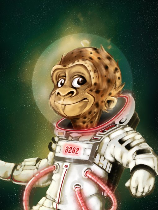 Galactic Primate is a cosmic derivate of #BAYC #3262 for #BenjaminKato competition by