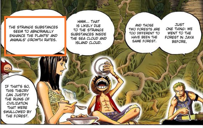 Robin in two different occasions bring up size of living things being large in Skypiea.