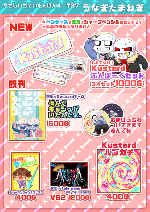 今回のおしながきです~!🙌数はそんなにないですが、Kustardのパステルなぶんぼーぐセットが出ます!😻🍼他、準新刊のギャグ本と既刊を持っていきます~!よろしくお願いしますっ🚽💕