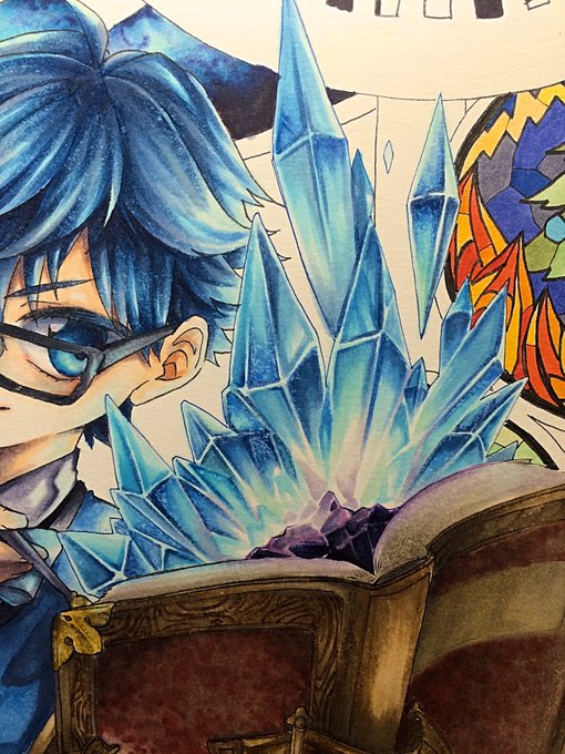 正直宝石より本の質感の方がよっぽど気が狂ってるしここに乗っかる水晶の方が描けんわ!!!!って感じ。この後すぐ描いた彩氷はそもそもこれ以上の空気感はもう2度とかけなさそうなレベル。過去の私の絵がうますぎる。