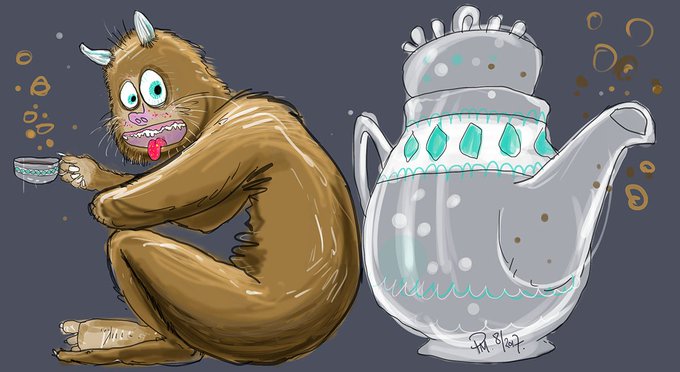 Fancy a cuppa? says Domovoi + Fancy Teapot #MythicalMashup @StudioTeaBreak #illustration #teatime