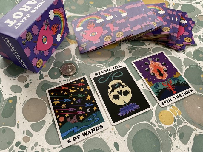 We're stoked to present a perfectly miniature version of Rachel Rosenkoetter's bright, bold, excellently psychedelic Rainbow Heart Tarot. At 2.5" x 3.5" it is truly tiny, with all the same great stuff as the original: matte art and golden holographic edges in a sturdy lidded box