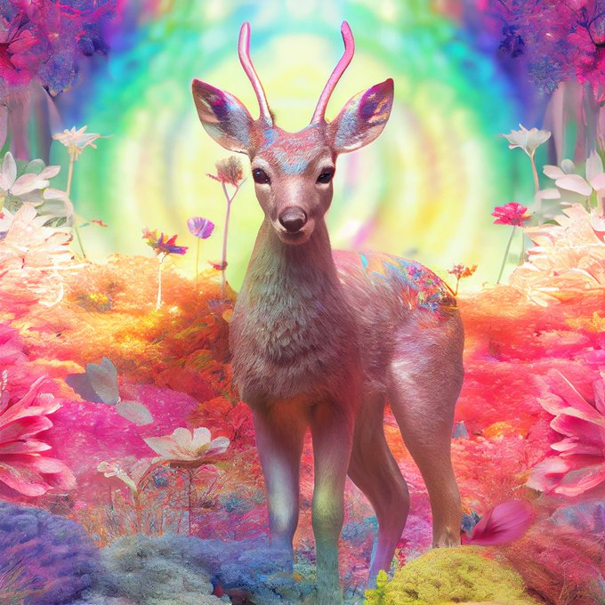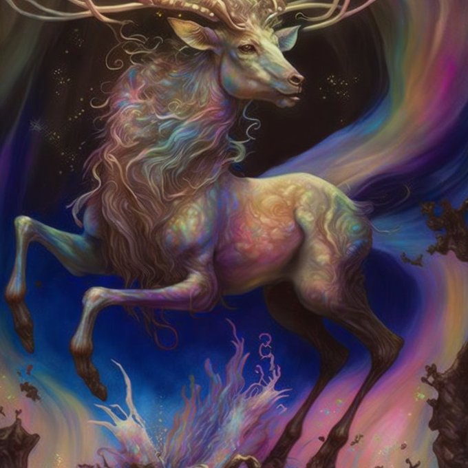#aiart #midjourney #deer #rainbow #iridescent #aiartdailytheme #aidaytonovember #glowvember2022
