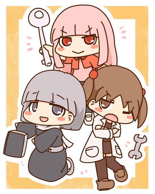 @c_tukimura 私とした事が(?)ちるちゃんの呟き見るまでお誕生日なの忘れていた…!!あんまり統一感の無い絵で申し訳ねぇ!!おめでとうー!!!( ・∀・)ノシ 三
