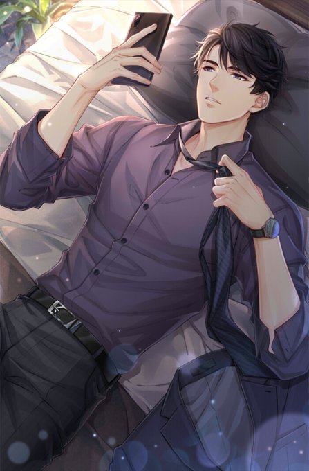 เขาหยิบโทรศัพท์ขึ้นมากดดูข้อความหลังจากที่เอนตัวนอนลงบนเตียง