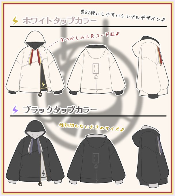 シンプルめの男女兼用のカミナリ様パーカーです!🦐💡