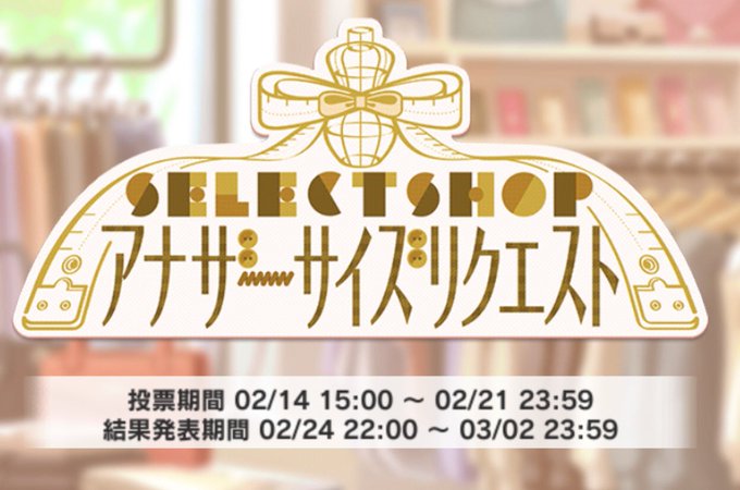 あ、セレクトショップのアナザーサイズリクエストの投票が本日までなので、まだの方はお早めに〜