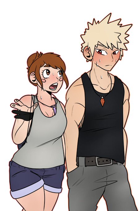 This was from an old HC that I sketched doodled but never finished. Essentially, Mina somehow convinces Ochako to put on a Ground Zero swimsuit and Katsuki just loses his shit. #kacchako