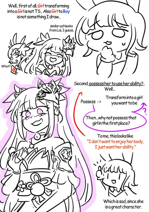 It's more like whether the character suits for TSF genre or not. They(Sparkle, Neeko, Yae Miko etc.) are the best as partner but not as heroine? Or it's just my problem with being careful with character's concept too much. https://t.co/aU3JBA6sJ8