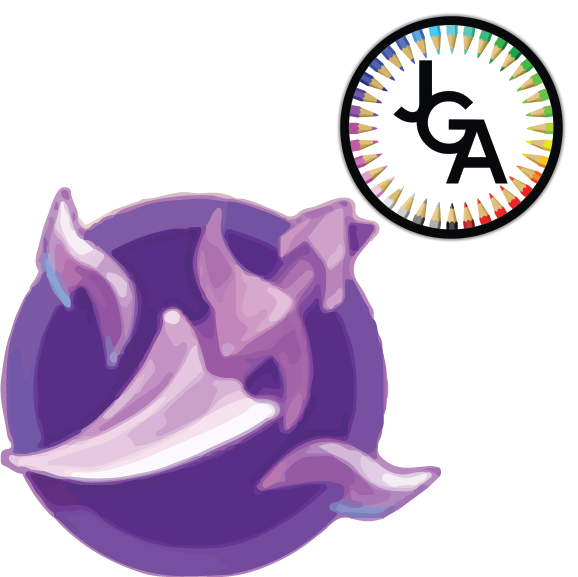 An illustrated logo resembles a person who performed with swords, either from the ground or in the air.